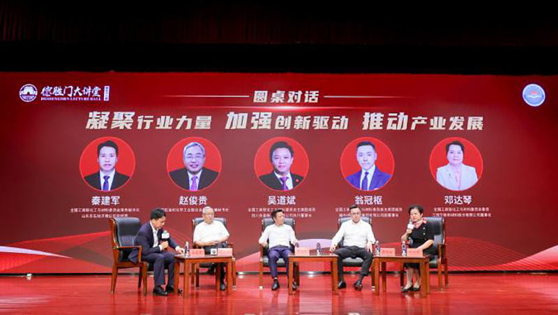 圆桌对话环节聚焦“集中企业与科研院所的力量,围绕制约部分化工新材料生产的关键单体与原材料制备技术落后的问题,加强技术攻关,实现科技自立自强”议题,中国石油和化学工业联合会副会长兼秘书长赵俊贵,委员会主席团成员、四川永盈新材料有限公司执行董事长吴道斌,委员会主席团成员、福州中景石化集团有限公司副董事长翁冠枢,委员会委员、江西宁新新材料股份有限公司董事长邓达琴等展开讨论,共话化工与材料产业高质量发展的实现路径。