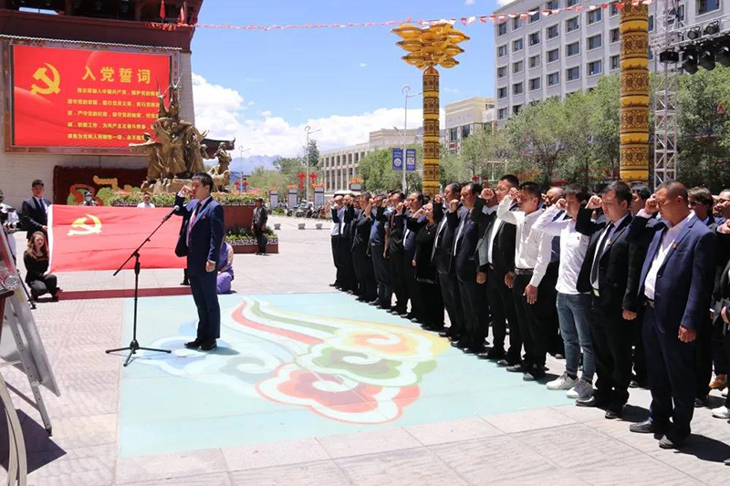 在活动当天,区工商联(总商会)在藏游坛城广场举办了老党员为新党员佩戴党徽、新党员入党宣誓暨老党员重温入党誓词、参观共产党历史展览活动。