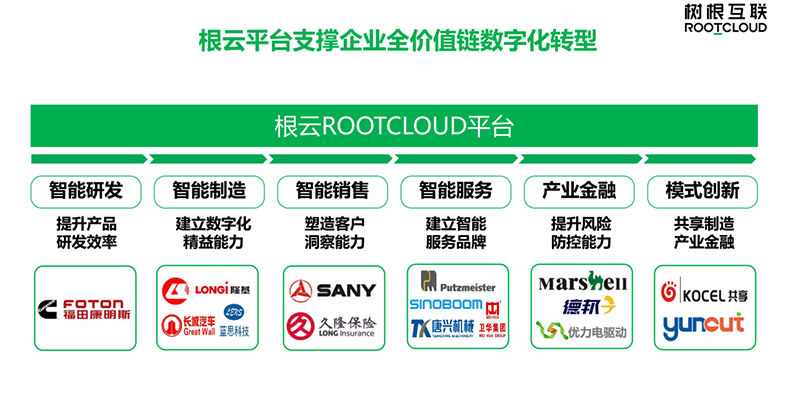 树根互联持续完善基于工业互联网操作系统的应用和解决方案,做到从智能研发、智能制造、智能营销、智能服务到产业金融,再到模式创新的全价值链覆盖,已为超过60个国家和地区、48个工业细分行业的企业提供“数字化转型新基座”服务。
