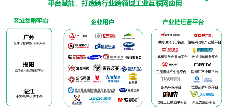 基于平台、伙伴、客户的模式,在直接服务终端客户的同时,树根互联也同时协助制造企业的龙头企业和地方政府构建产业链运营平台和区域产业集群平台。