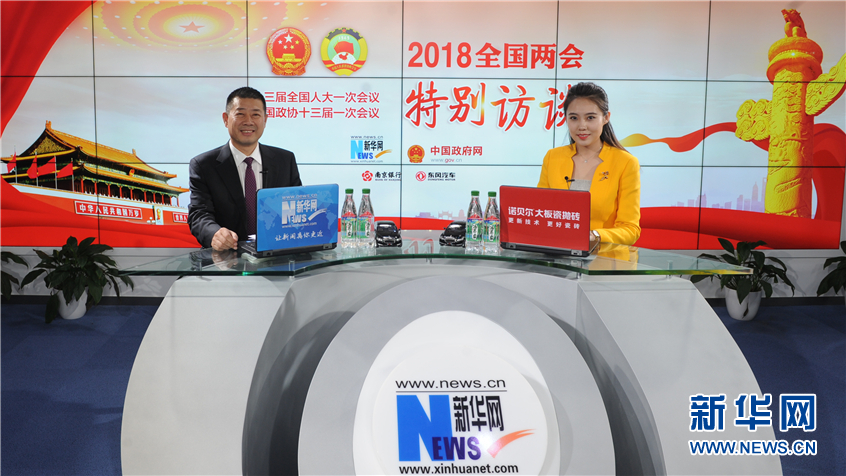 全国人大代表、飞鹤乳业董事长冷友斌(左)做客新华网2018全国两会特别访谈。