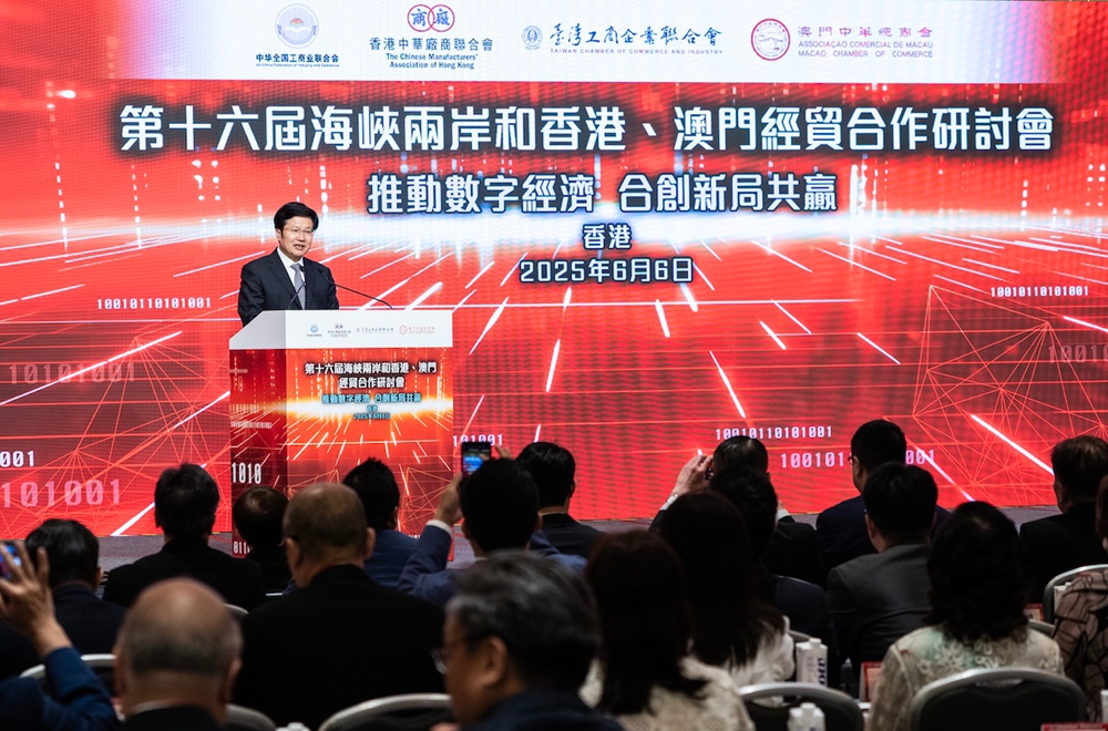 应香港中华厂商联合会邀请,全国政协副主席、全国工商联主席高云龙率全国工商联代表团于2025年6月5日至7日赴香港出席第十六届海峡两岸和香港、澳门经贸合作研讨会并访问。此次研讨会以“推动数字经济 合创新局共赢”为主题。高云龙在开幕式致辞指出,海峡两岸和港澳地区同根同源,应携手把握时代脉搏、共筑数字未来。数字经济的灵魂是创新,关键是赋能与融合,重点是加快数字产业化和产业数字化,支撑在青年科技人才队伍,海峡两岸和港澳企业要聚焦数字科技前沿领域加强协同攻关,推动产业共链、市场共拓、场景共享、人才共育,合力助推我国在全球数字经济竞争中赢得主动。他表示,希望海峡两岸和港澳商会继续发挥优势、齐心协力,以此次研讨交流为契机,深化务实合作,助力海峡两岸和港澳打造数字经济创新样板,为民族复兴注入磅礴数字动能。