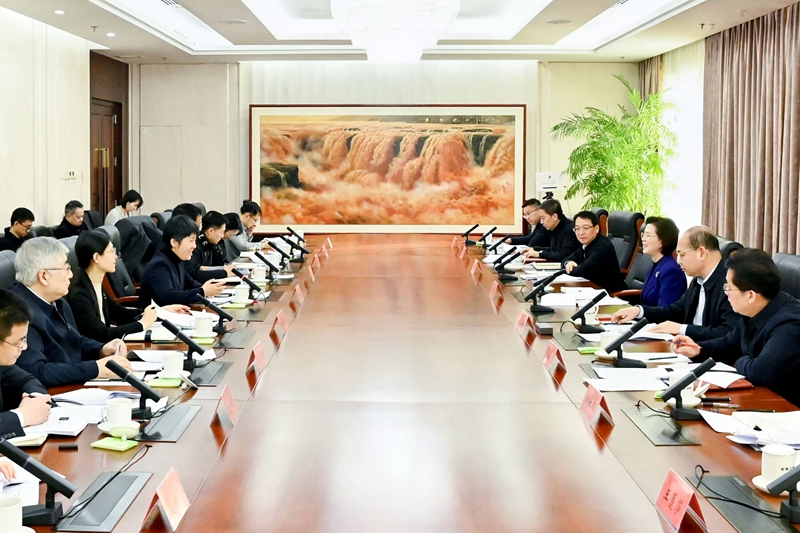 2月13日,中央统战部副部长、全国工商联党组书记沈莹会见来访的财政部党组成员、副部长郭婷婷一行。全国工商联党组成员、副主席邱小平、杨佑兴出席。