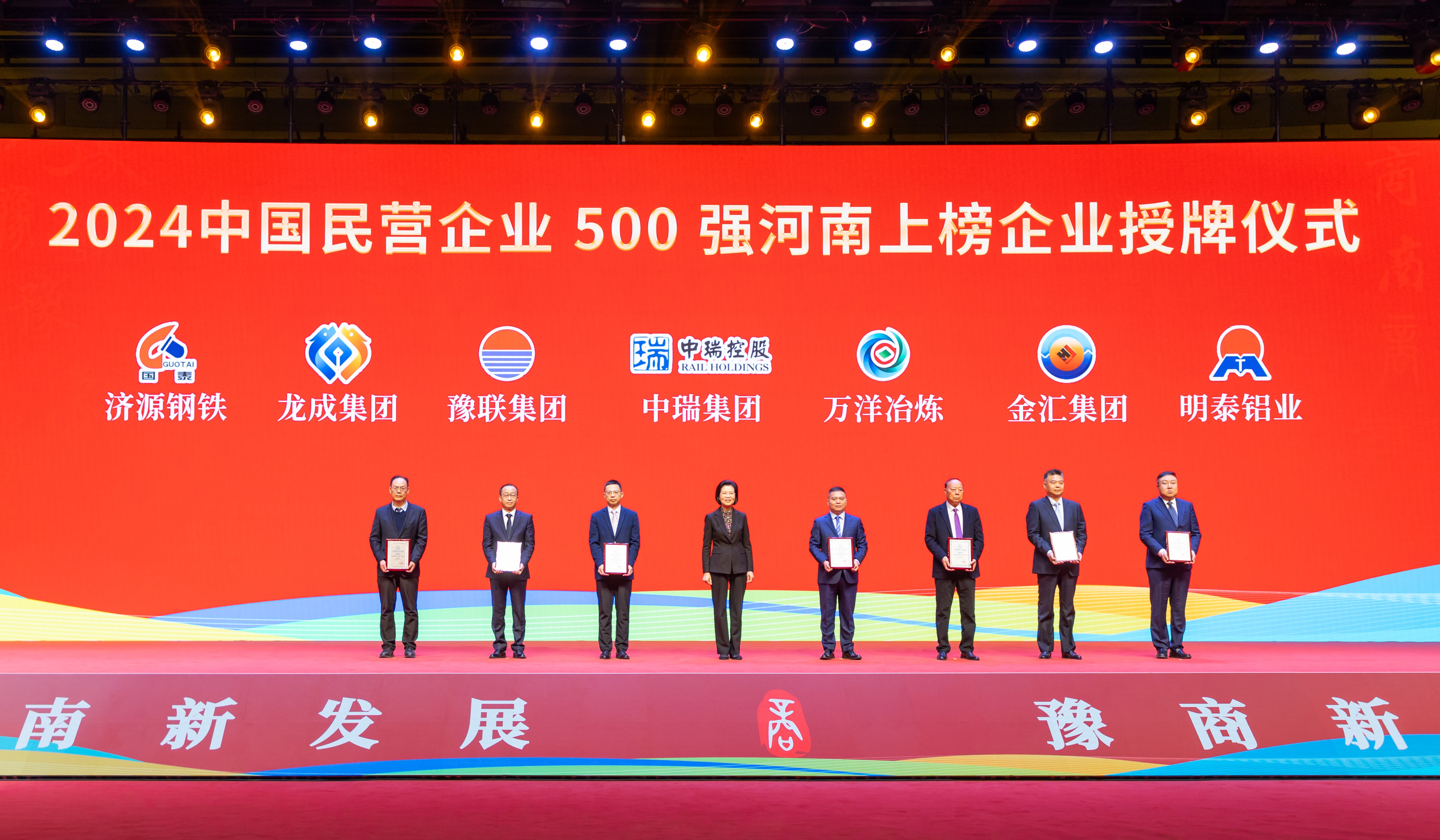 沈莹为上榜“2024中国民营企业500强”的河南企业代表授牌