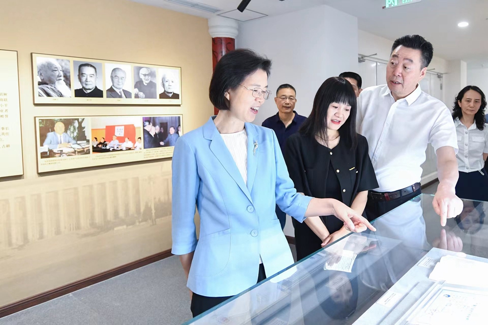 7月12日上午,中央统战部副部长、全国工商联党组书记沈莹参观中华全国工商业联合会会史展。张雷/摄