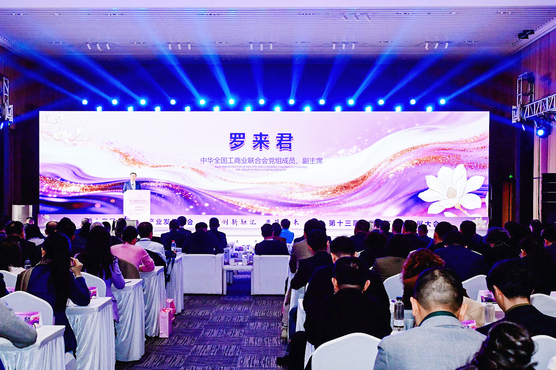 2026年3月23日,由全国工商联金银珠宝业商会主办的第十三届中国珠宝产业发展大会在上海举行。大会以“创新融汇 共筑未来”为主题,深入贯彻党的二十届四中全会精神及“十五五”规划部署要求,立足行业发展新形势,引导企业抢抓机遇,推动我国珠宝产业实现更高质量、更可持续发展。全国工商联党组成员、副主席罗来君出席大会并讲话。全国工商联金银珠宝业商会会长王秀娥作大会致辞。