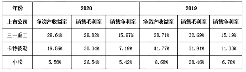 表2 近年三一重工、卡特彼勒、小松经营情况比较